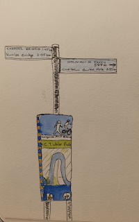 I couldn't figure out how to draw with watercolour in a moving vehicle so I used the Sketchbook Pro app on my iPad with a bamboo stylus. I sketched the pictures below of the scenery from the car to kill the boredom of a 5.5 hr drive - so it's sketching from what I see.